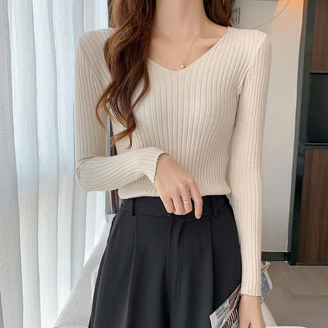 リブニット レディース インナーシャツ ニットセーター インナーウェア Vネック タイト インナー ストレッチ セーター ニット トップス リブセーター 肌着 ニット インナー ブラック ホワイト
