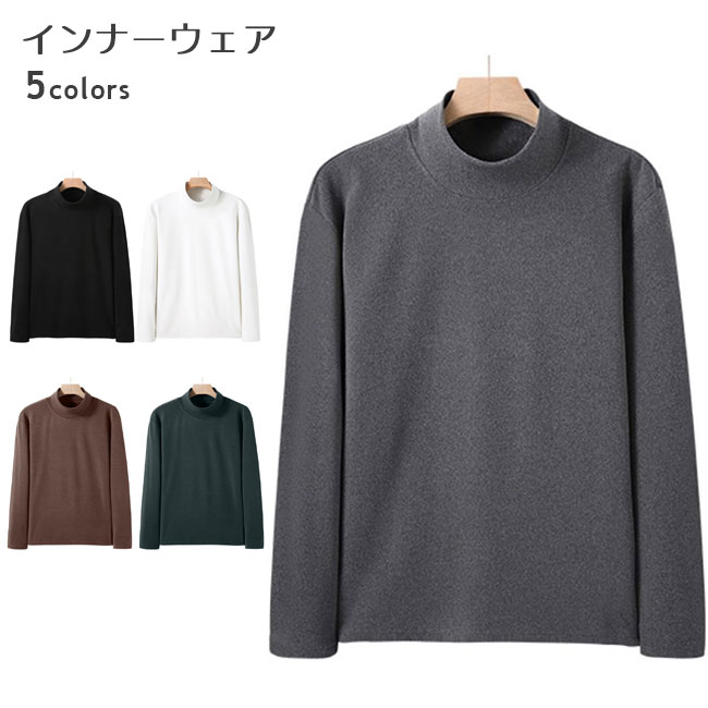 インナーウェア メンズ インナーシャツ 長袖 ヒートテック インナー 暖かい 厚手 冬 レイヤードコーデ 重ね着風 トップス 伸縮 男性 長袖インナー 保温性 ハーフハイネック 無地 ブラック ホワイト グレー グリーン ブラウン
