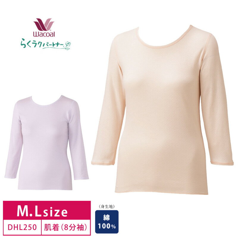 10%OFF ワコール wacoal らくラクパートナー らくらくパートナー 接結ニット トップス (8分袖) インナー 綿100% M・Lサイズ DHL250