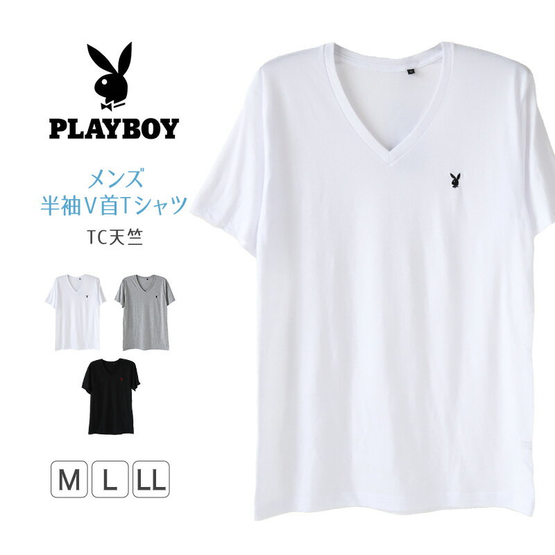 インナー メンズ tシャツ 半袖 vネック 綿混 プレイボーイ M〜LL 紳士 トップス インナーシャツ ワンポイント v首 下着 紳士肌着 男 PLAYBOY ブランド アンダーウェア