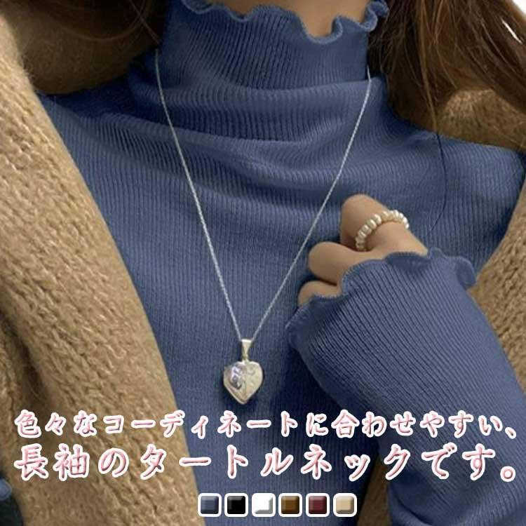 2枚セット ハイネック tシャツ カットソー tシャツ フリル レディース インナー トップス 長袖 春 秋冬 無地 大きいサイズ 防寒 大人