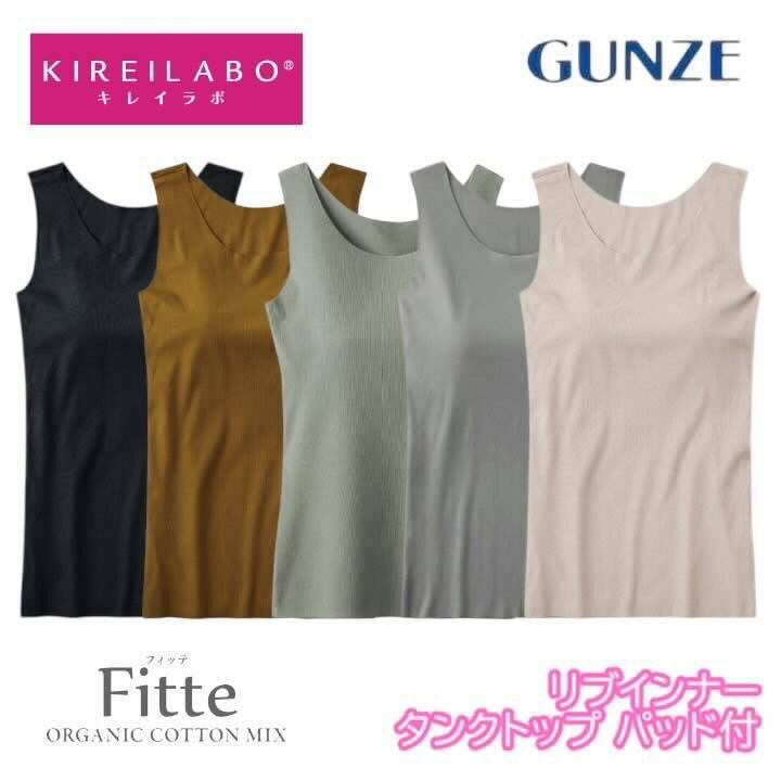 グンゼ キレイラボ ブラトップ タンクトップ パッド付 レディース 年間 綿混 リブ ノースリーブ 可愛い オーガニックコットン きりっぱなし カットオフ 女性 下着 トップス 婦人 肌着 インナー 胸カップ KB5058N KIREILABO Fitte M-LL ギフト プレゼント