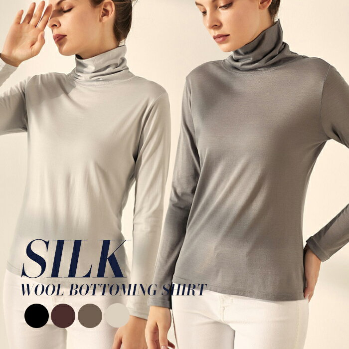 全商品2点で20%off★シルク インナー コットン入り レディース 秋 冬 長袖 ハイネック Tシャツ 部屋着 無地 伸縮性 インナーウエア 肌着 下着 絹 ルームウエア トップス 敏感肌 パジャマ 温活 シルク 秋 冬 伸縮性 温かい silk inner ladies