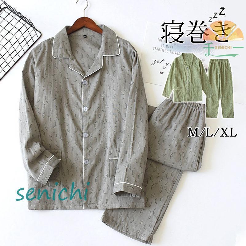 パジャマ メンズ 長袖 セットアップ 上下セット 前開き ルームウェア ナイトウェア トップス パンツ カジュアル シンプル 男性用 入院 父の日