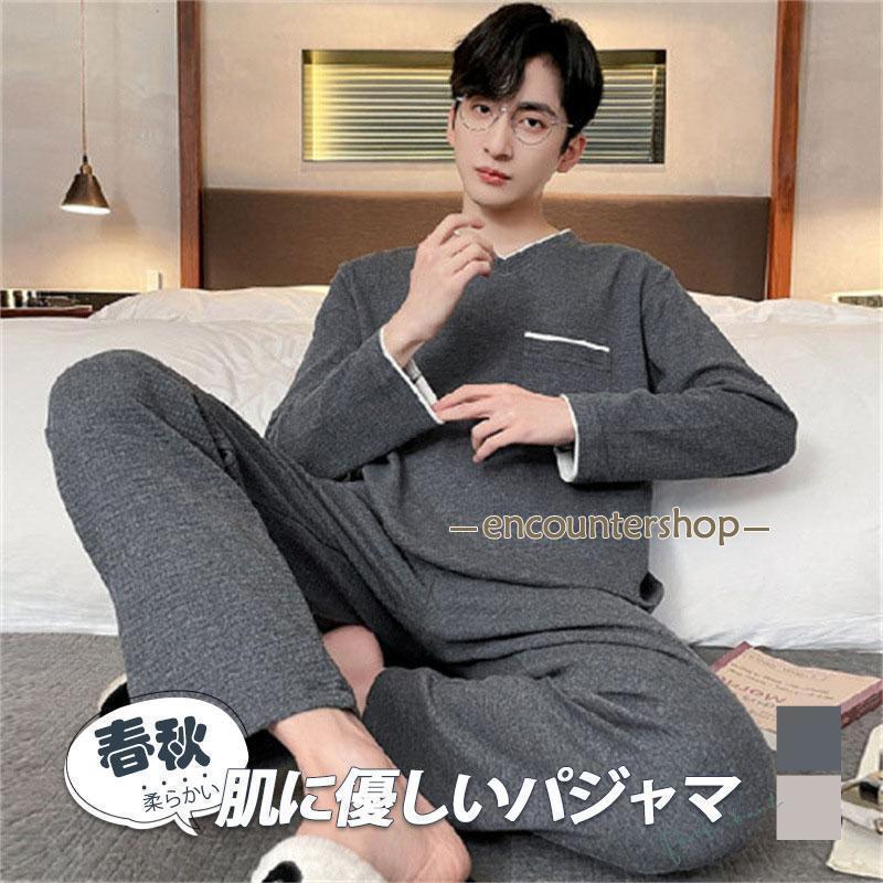 パジャマ メンズ 長袖 綿 コットン セットアップ 上下セット 春 夏 秋 ルームウェア ナイトウェア トップス パンツ カジュアル 寝巻き シンプル 男性用