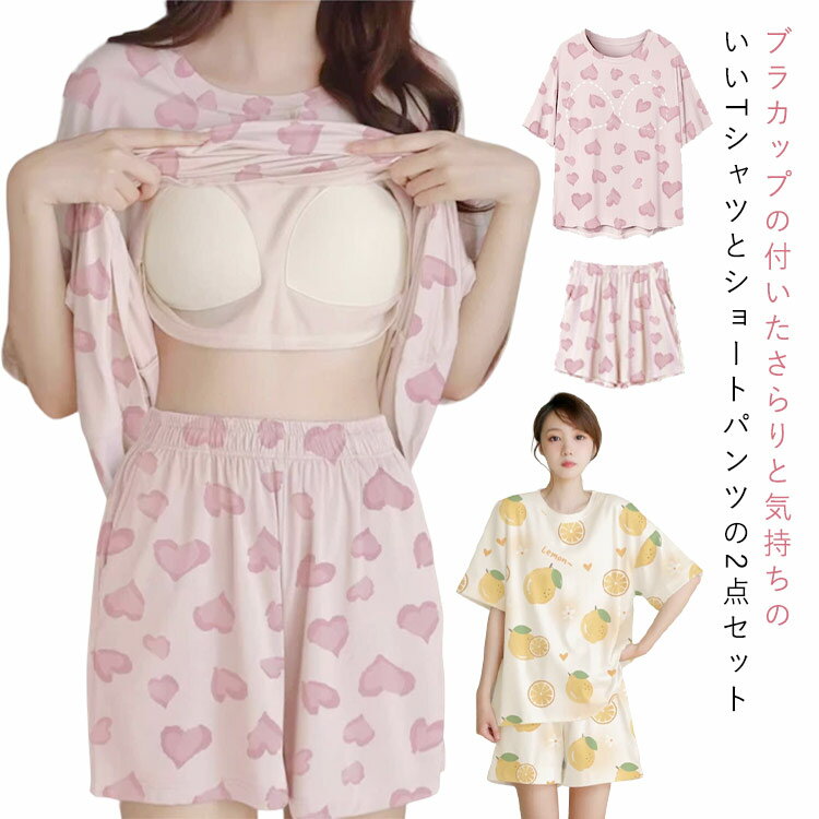 セットアップ カップ付き カップ付きインナー ねまき レディース 半袖 上下セット 半袖Tシャツ ルームウェア トップス 部屋着 寝間着 寝巻き ぱじゃま スウェット カットソー ショートパン プルオーバー ナイトウェア パジャマ ルームウェア 春