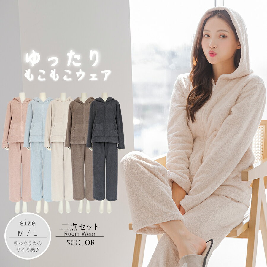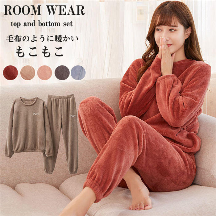 ルームウェア レディース パジャマ ふわもこ 部屋着 トップス&パンツ 上下セット【MOKO01】