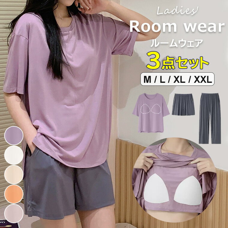 ゆったりシルエットのレディース用カップ付きルームウェア3点セットのご紹介です♪ カップ付き 3点セット 半袖トップス ショートパンツ ロングパンツ レディース パジャマ■ 商品説明ゆったりと着れるシンプルデザインのルームウェアです。 半袖トップスとショートパンツ、ロングパンツの3点セットです。 トップスはカップ付きなので、ちょっとのお出かけや急な来客時も安心です。 カジュアルデザインですので年齢を問わずどんな女性にもオススメ。 動きやすくて、リラックスな着心地、ストレスフリーに着られます。 旅行やお泊り、ちょっとしたお出かけにも大活躍します。■ カラーパープル / オフホワイト / ベージュ / オレンジ / ピンク ※モニターの発色の具合によって実際のものと色が異なる場合がございます。ご了承ください。■ サイズM / L / XL / XXL ※サイズ詳細は商品画像のサイズチャートをご参照ください。 ※測り方によって、多少の誤差が生じる場合がございます。■ 素材ビスコース95% ポリエステル5%■ 検索キーワードストレスフリー♪カップ付き 3点セット 半袖トップス+ショートパンツ+ロングパンツ レディース パジャマ 部屋着 ルームウェア 半袖 短パン 上下セット ナイトウェア パープル オフホワイト ベージュ オレンジ ピンク M L XL XXL ビスコース95% ポリエステル5% ブラ付き 快適パジャマ 部屋着 寝巻き オシャレ 可愛い 無地 大人可愛い 柔らかい 通気 リラックス 大きいサイズ 女性 マタニティ ゆったり プレゼント ギフト カップ付き パジャマ レディース