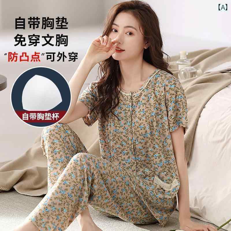 パジャマ 上下 薄手 ママ 夏用 パッド入り パジャマ 綿 カーディガン 半袖 ズボン ホームウェア 薄手 カジュアル スーツ