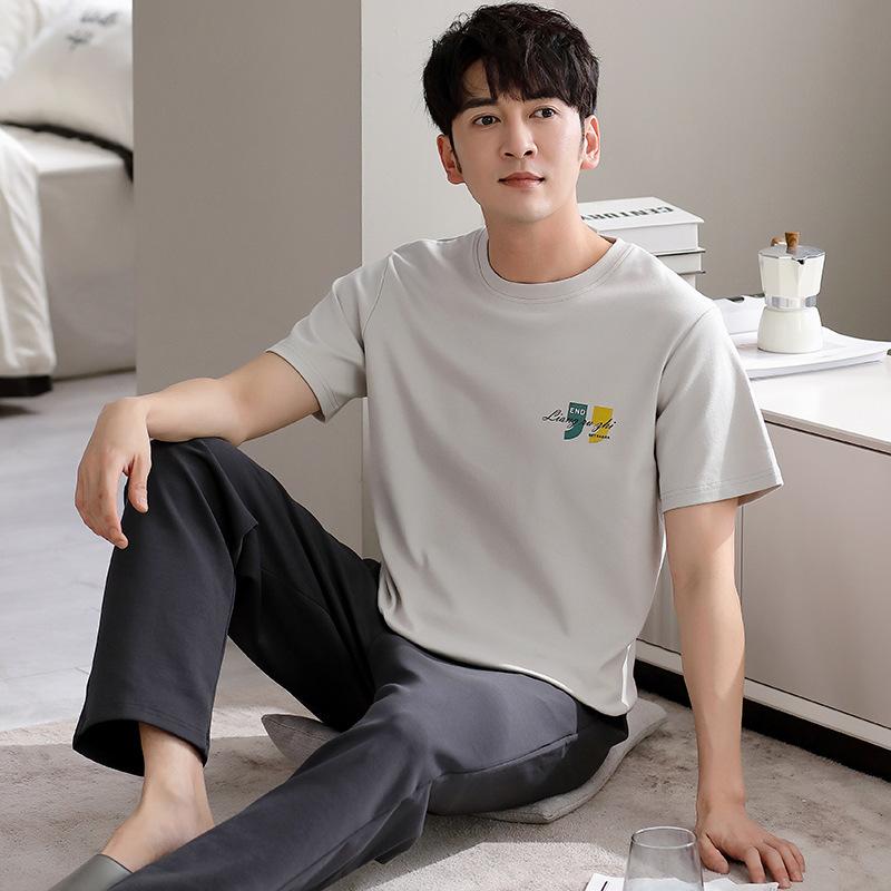 ルームウェア メンズ 上下セット 綿100% 半袖 ロングパンツ 丸首 薄手 吸汗速乾 通気性 快適 リラックス ストレッチ 春夏 オールシーズン カジュアル パジャマ 部屋着 ワンマイルウェア