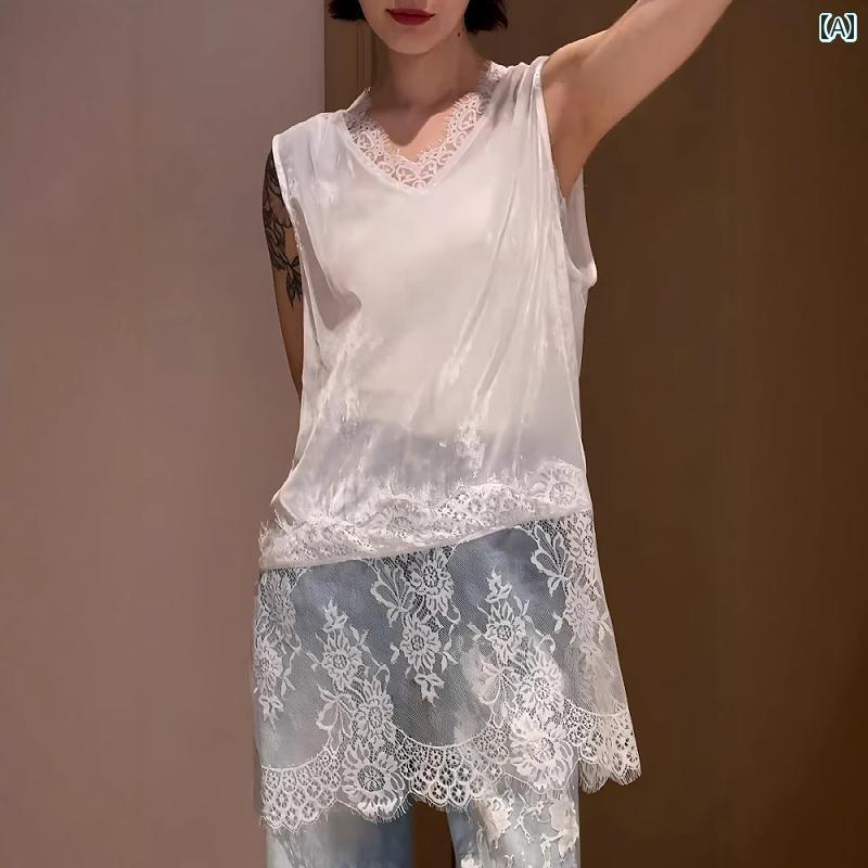 レディース トップス 夏用の レディース 大きいサイズ 白い レース インナー ノースリーブ キャミソール スリム ミディアムと ロングの レイヤードトップス