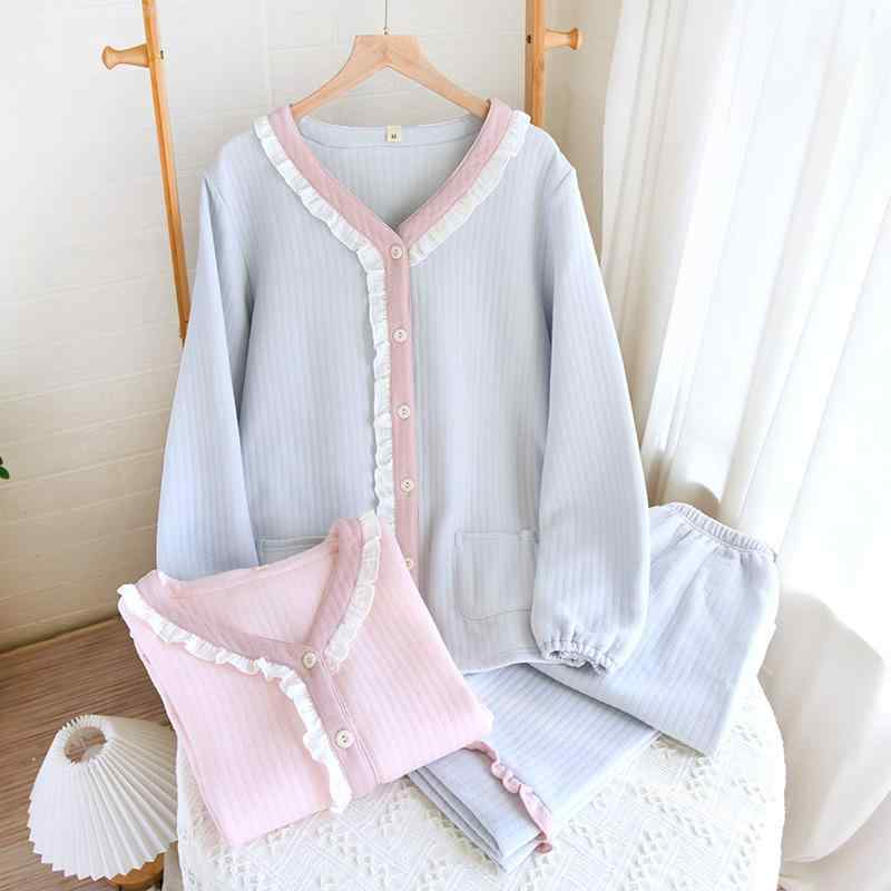 ・カテゴリ: セットアップ・素材: 綿・生地の厚さ: 厚手(約201-250g/平方メートル)・ネックライン: Vネック・袖丈: 長袖・パンツ丈: ロングパンツ・機能: リラックス, 通気性, 睡眠, バス, ストレッチ, ホームウェア, 保温, 快適, 外出・対象: 若い女性・シーン: ホーム・カラー: ピンク, ライトブルー・サイズ: M, L, XL・主な素材の含有量: 90-95%・スタイル: シンプル、カジュアル