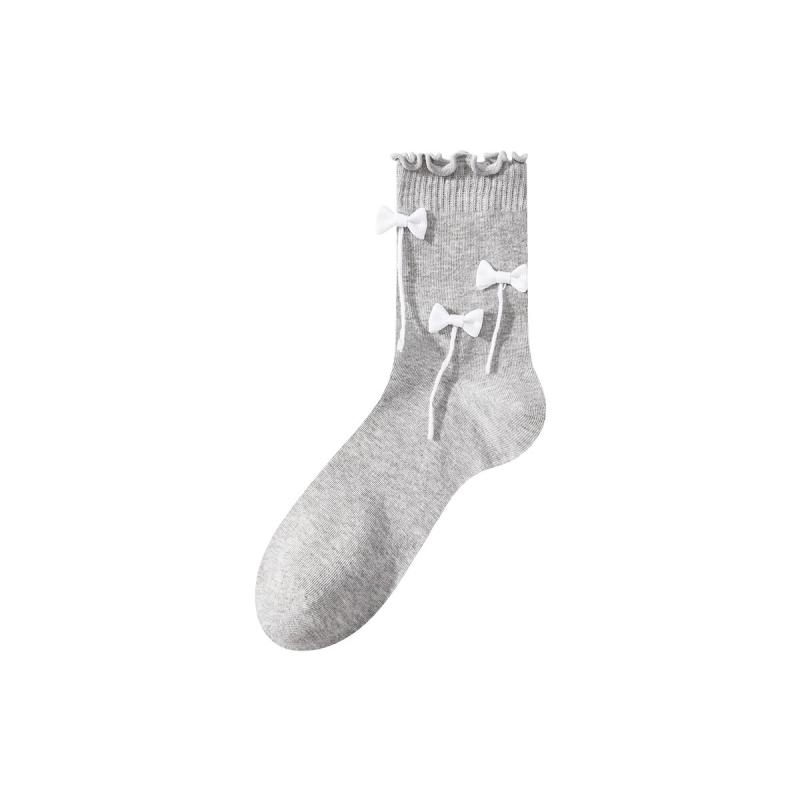 靴下 レディース 春夏 白 バタフライ 蝶結び コットン 綿混紡 ミドル丈 木耳 フリル 薄手 婦人 カジュアル ソックス