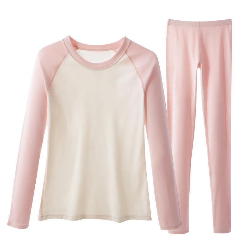 インナーウェア レディース 秋冬 保温 上下セット 再生繊維 パジャマ 部屋着 10代 20代 かわいい 配色 ピンク系 グリーン系 ブラック系 イエロー系
