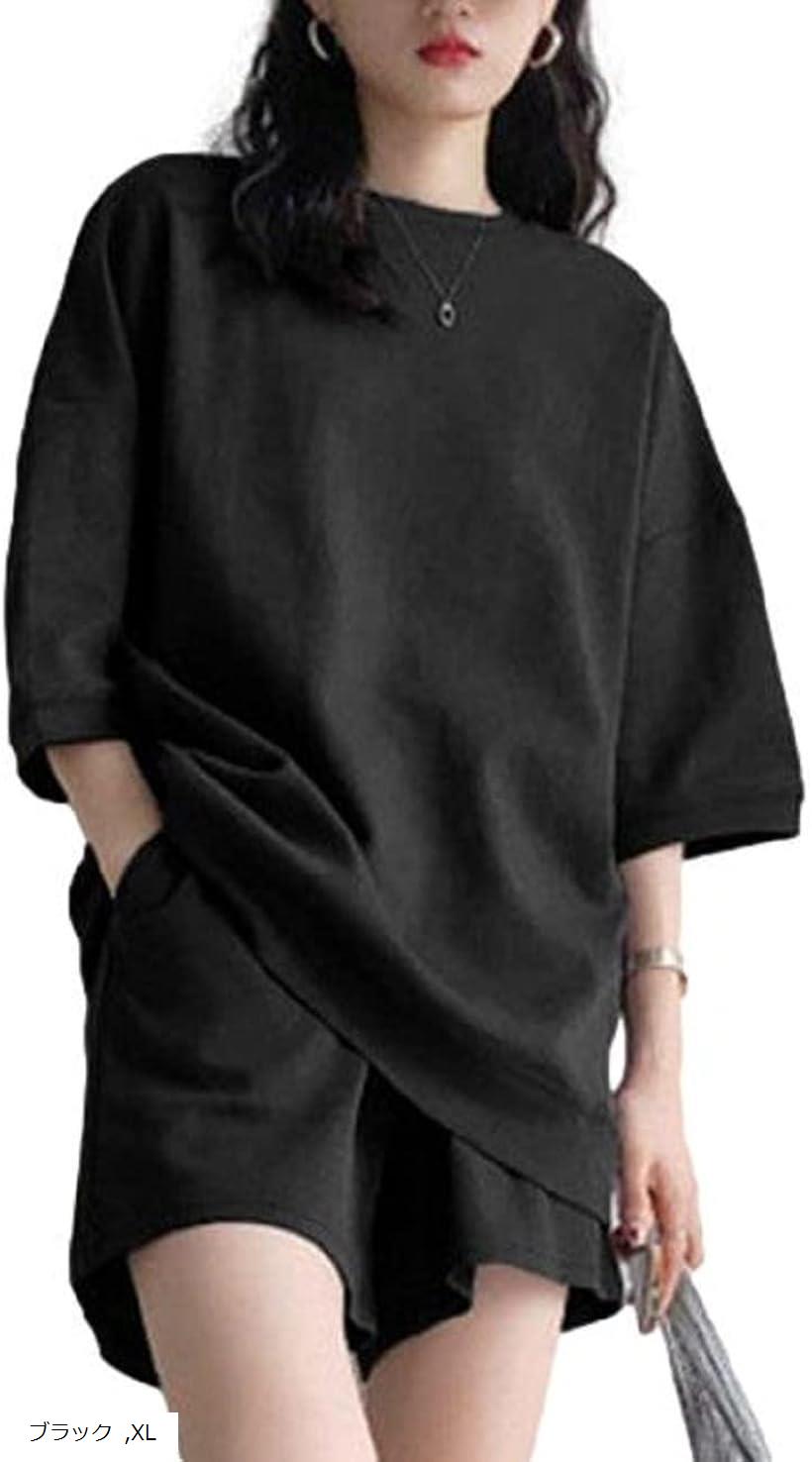 リリカ ルーム ウエア セット ハーフ パンツ カジュアル レデイース 黒(ブラック, XL)