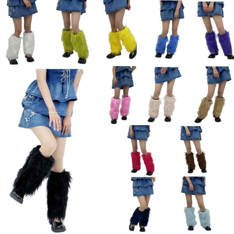 靴下 レディース レッグウォーマー フェイクファー ミドル丈 ソックス y2k かわいい 無地 秋冬 ホワイト グリーン ブラック ベージュ ブルー ピンク パープル