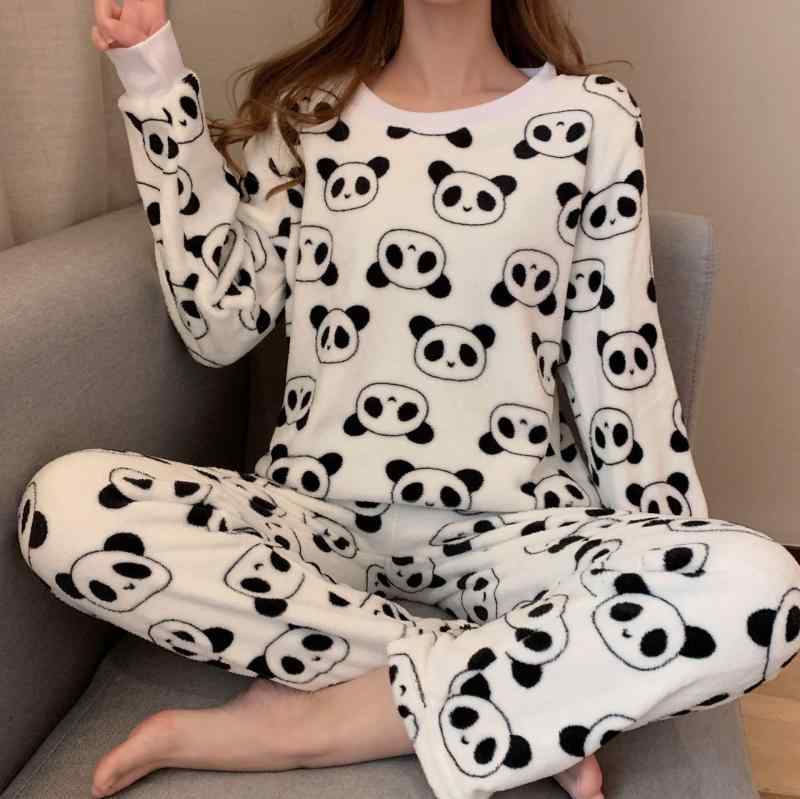 パジャマ レディース 秋冬 珊瑚绒(サンゴフリース) パンダ柄 長袖 ルームウェア 上下セット 厚手 暖か 部屋着 かわいい 普段使い ポリエステル