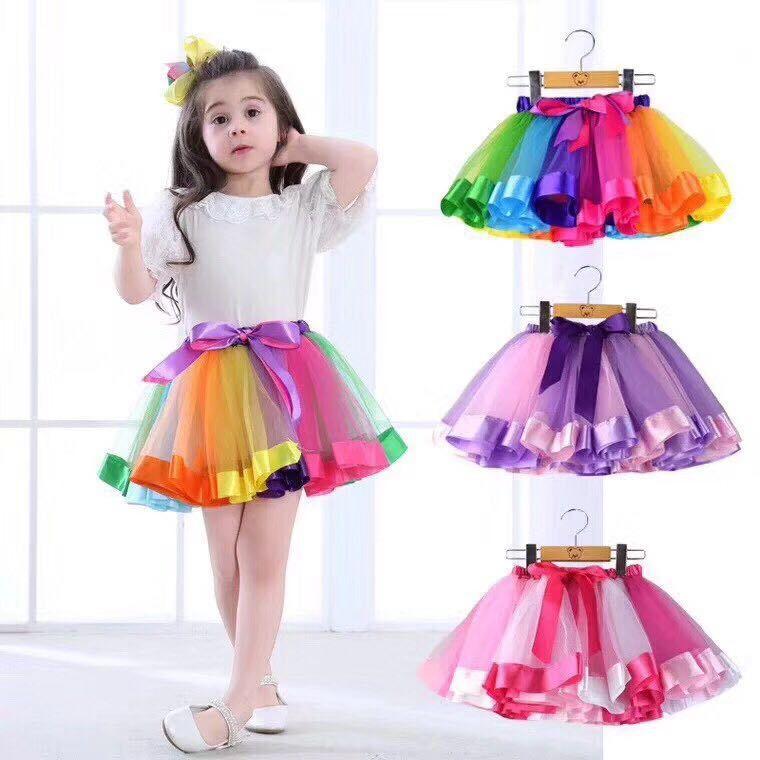 スカート キッズ 虹色チュールスカート 子供 チュールスカート チュチュスカート 女の子 ハーフスカート 膝丈 迷彩柄 ポリエステル Aライン 舞台衣装 発表会 演奏会 イベント コスプレ かわいい