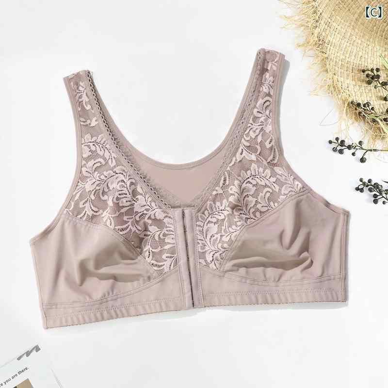 ブラジャー レディース 大きいサイズ 薄手レース ノンワイヤー 前開き 全面カップ 補正 育乳 通気性 快適 0XL 1XL 2XL 3XL 4XL 5XL ブラック ホワイト ベージュ