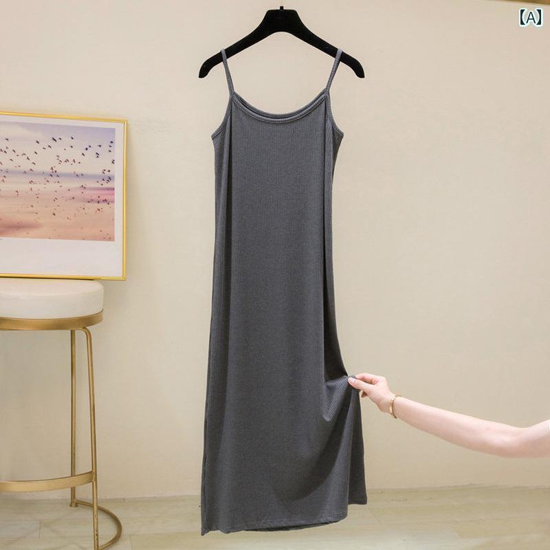 ペチコート ワンピース インナー スリップ レディース キャミワンピ キャミソール 大きめサイズ 下着 肌着 透け防止 通気性 柔らかい ストレッチ リブ スリムフィット ラウンドネック 快適 シンプル 無地 グレー ブラック ブラウン