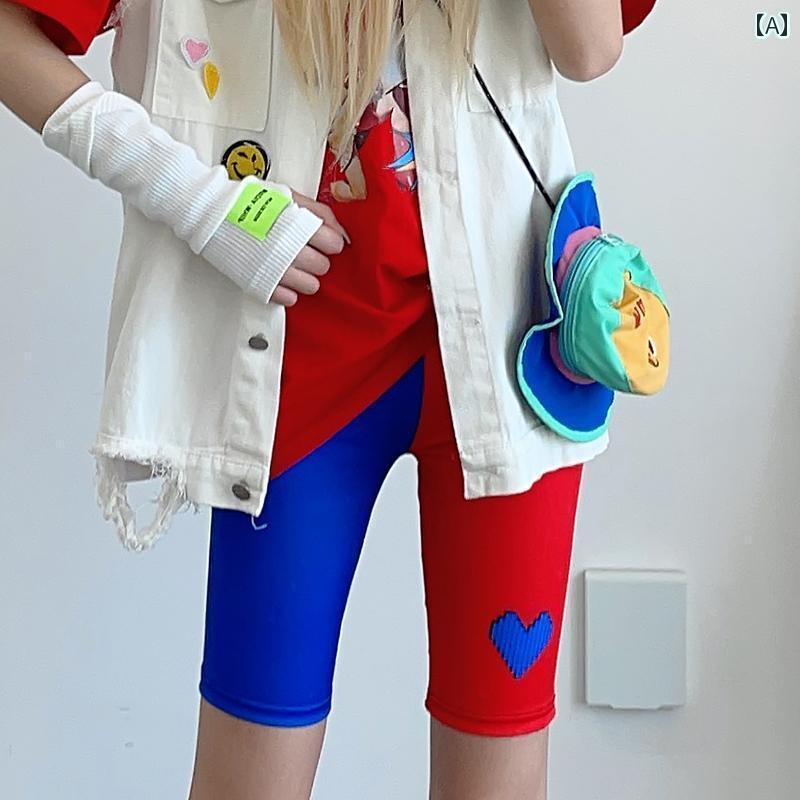 レギンス レディース 春夏 スパッツ パンツ 五分丈 ストレッチ ストレッチ性 通気性 快適 柔らかい インナー ヨガ ルームウェア おしゃれ プリント ハート 赤 ピンク 青