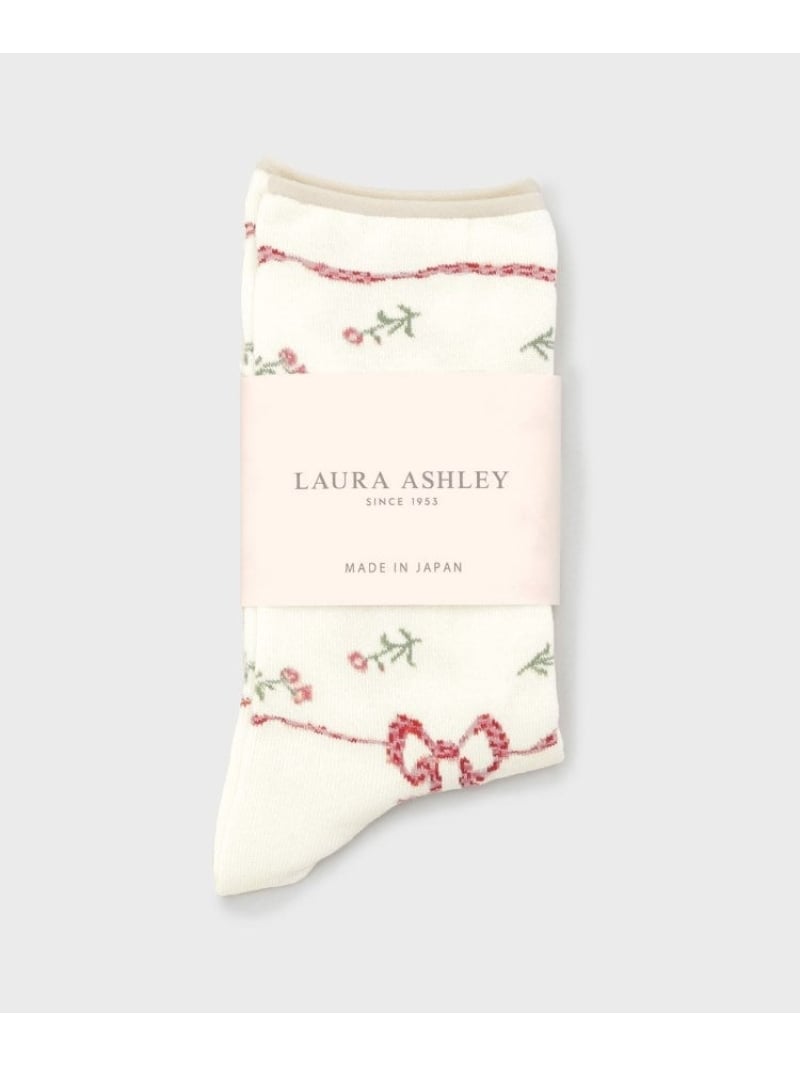 LAURA ASHLEY HOME 【日本製】ラークフィールドリボン柄 靴下 ローラ アシュレイ 靴下・レッグウェア 靴下 レッド ブルー
