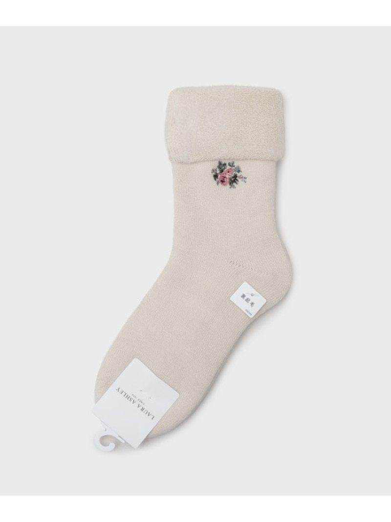 【内側起毛】ライホール柄 あたたかルームソックス LAURA ASHLEY HOME ローラ アシュレイ 靴下・レッグウェア 靴下 ブラウン ピンク ホワイト[Rakuten Fashion]