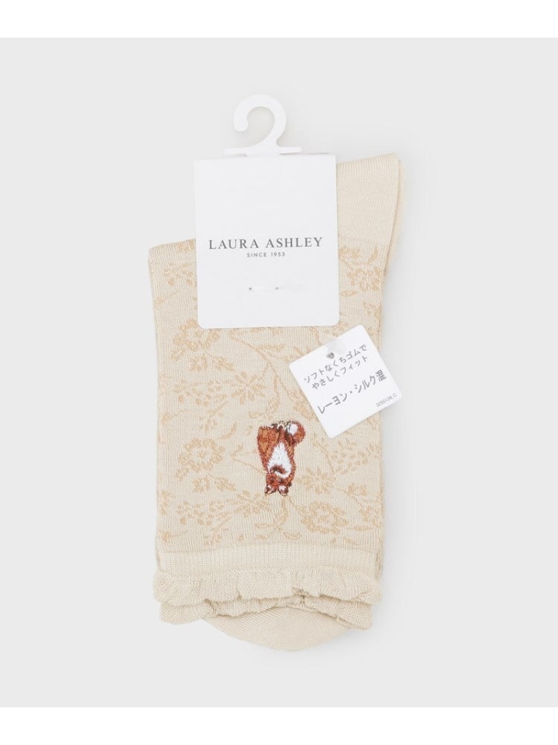 フォックス刺繍 レーヨンシルク混 クルーソックス LAURA ASHLEY HOME ローラ アシュレイ 靴下・レッグウェア 靴下 ホワイト ブラウン ブラック[Rakuten Fashion]