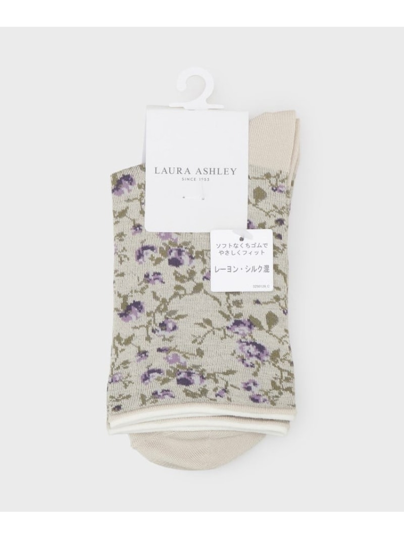 LAURA ASHLEY HOME タルラ柄 レーヨンシルク混 クルーソックス ローラ アシュレイ 靴下・レッグウェア 靴下 ホワイト ブラウン ピンク