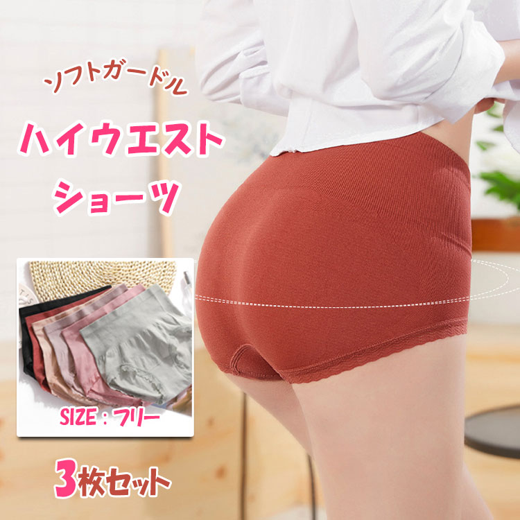 最大20% ショーツ ソフトガードル ハイウエスト 3枚セット レディース 補正ショーツ 高伸縮 柔軟 快適フィット ウエスト優しく引き締め 3dヒップデザイン お尻引き上げ 美尻キープ 美尻シルエット まとめ買い インナーショーツ