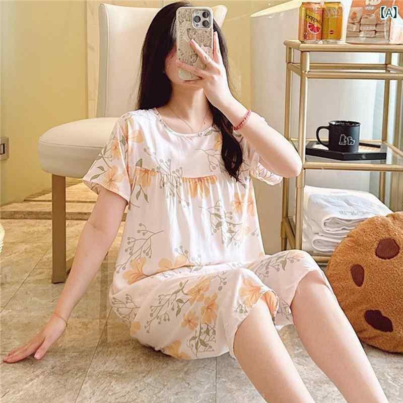 薄手 涼しい レディース パジャマ 夏の レディース 綿 シルクの 薄手 パジャマ 半袖 スーツ パンツ 人工 空調 服 ツーピース ホームウェア