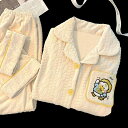 パジャマ レディース 長袖 長ズボン 上下セット 部屋着 秋冬 フリース 暖かい かわいい アヒル柄