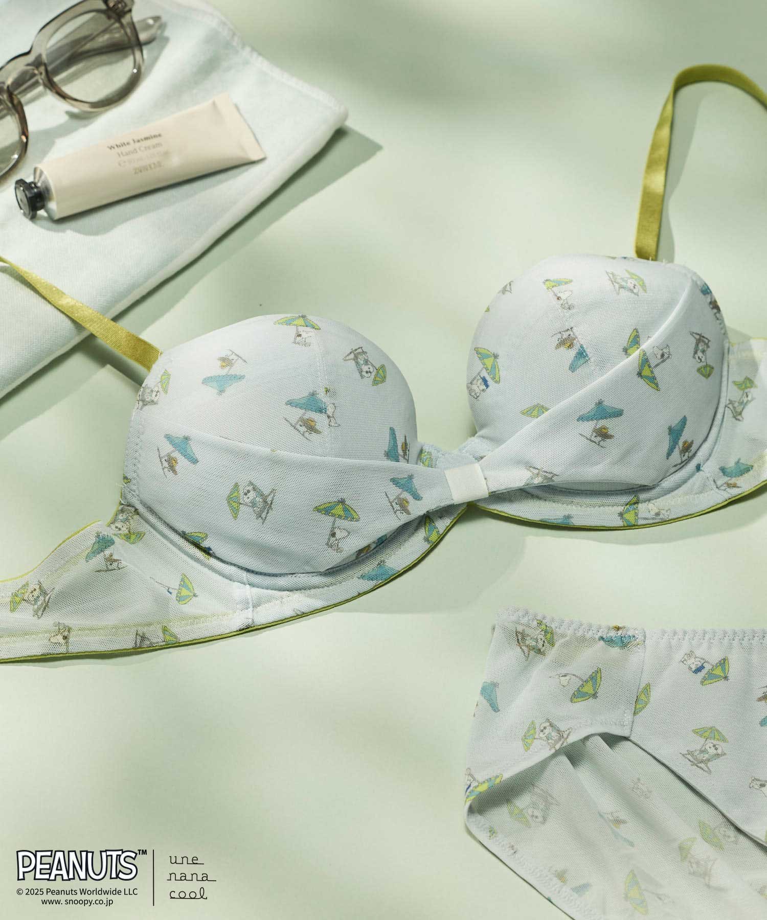 【SALE/50%OFF】une nana cool 【スヌーピー】リボンブラ MADE WITH PEANUTS ウンナナクール インナー・ルームウェア ブラジャー グレー グリーン