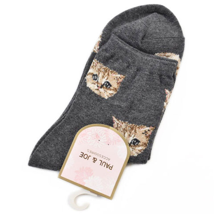 ポール&ジョー アクセソワ 靴下 ショートソックス レディース 1足 ブランド PAUL & JOE チャコール グレー キャット ネコ ねこ 猫 ヌネット 21-23cm 23-25cm 女性 婦人 カジュアル おしゃれ 日本製 10代 20代 30代 40代 50代 60代 プレゼント ギフト ポールアンドジョー