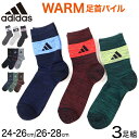 【要エントリー★12/10は抽選でポイントバック!】アディダス メンズ 靴下 クルーソックス レッグ部パイル 3足組 24-26cm・26-28cm クルー丈 ソックス adidas 秋 冬 足首 冷え あったか 暖かい 24cm 25cm 26cm 27cm 28cm 福助