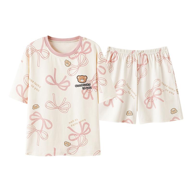 ・カテゴリ: パジャマ・スタイル: プルオーバー・主な素材: 綿100%・厚さ: 薄手・ネックライン: クルーネック・袖丈: 3分袖・丈: ショートパンツ・機能: リラックス、通気性、伸縮性、保温、快適・対象: レディース・シーン: ルームウェア・サイズ展開: M、L、XL、XXL・デザイン: スウィート、キュート