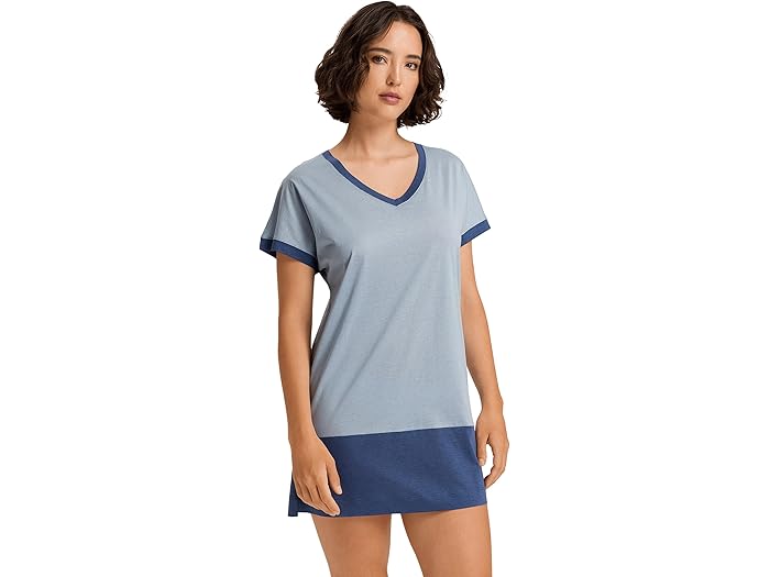 (取寄) ハンロ レディース ローラ ショート スリーブ ビッグ シャツ ナイトガウン Hanro women Laura Short Sleeve Big Shirt Nightgown Sea Breeze