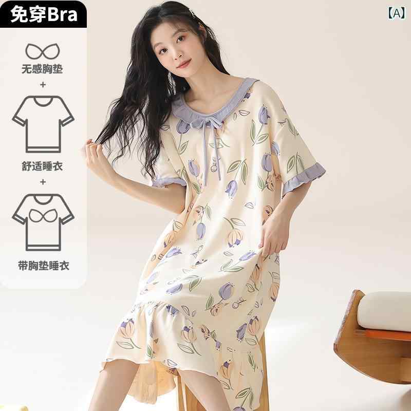 パジャマ レディース かわいい アーバン ビューティー コットン パジャマ レディース 夏用 ナイトドレス 胸 パッド 付き 2025年 大きいサイズ ドレス スウィートホーム クロージング
