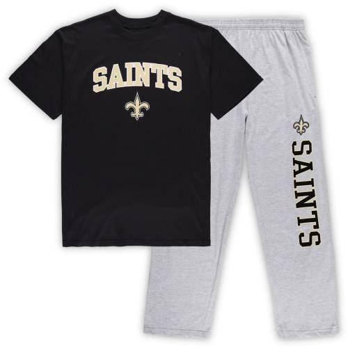 灰色 グレー グレイ セインツ Tシャツ 黒色 ブラック ニューオーリンズ 【大きめ】 & 【 UNBRANDED CONCEPTS SPORT BLACK/HEATHERED GRAY NEW ORLEANS SAINTS BIG TALL T-SHIRT PANTS SLEEP SET / SNT BLACK 】 インナー 下着 ナ