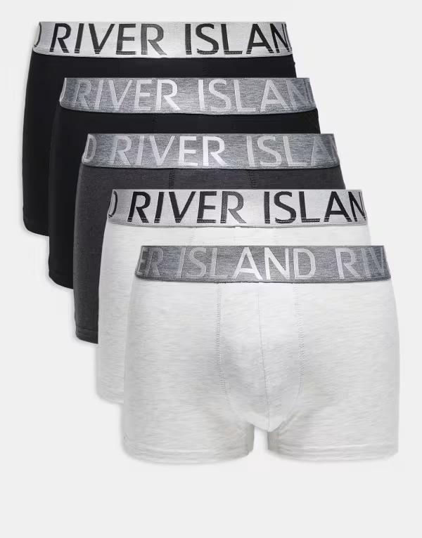 リバーアイランド メンズ アンダーウェア ボクサーパンツ River Island 5 pack boxer briefs in mixed Gray グレー