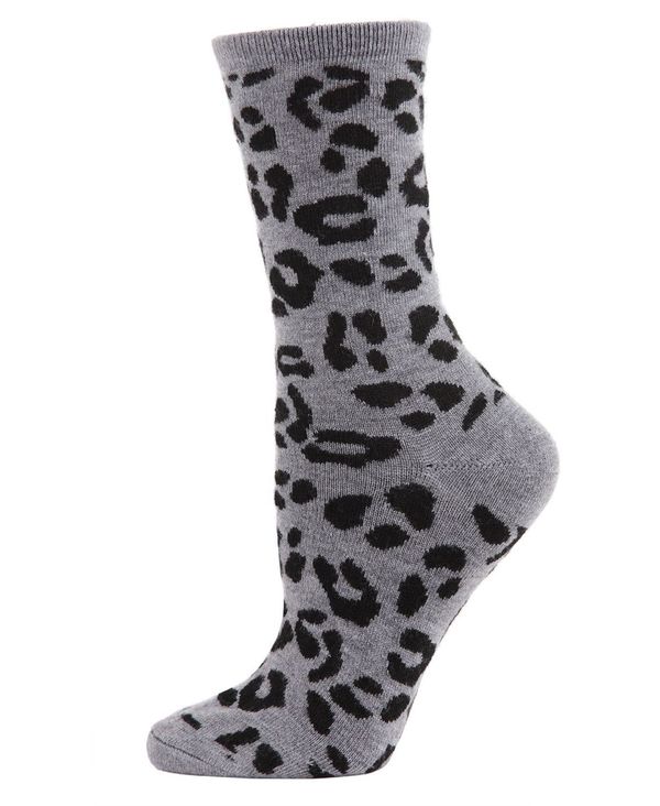 メモイ レディース アンダーウェア 靴下 アニマル柄 プリント MeMoi Leopard Animal Print Cashmere Women's Crew Socks Med Gray H グレー
