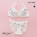 ラブジェリー コサージュケミカル ブラセット ABCD 盛り胸 Wパッド 谷間ブラ バストアップ ブラジャー ショーツ セット Love gerie レディース 全2色 A70-M-D80-L