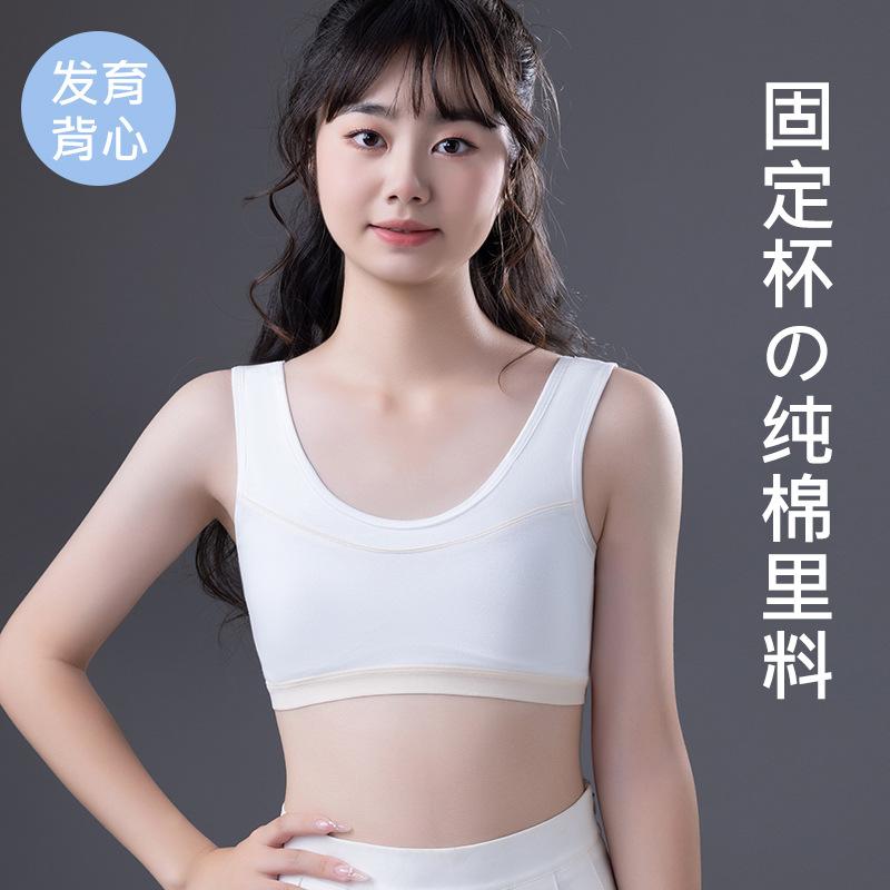 ブラジャー ガールズ ティーンエイジャー向け コットン スポブラ 通気性 三角カップ インナー M L XL ホワイト ピンク系 ブルー系