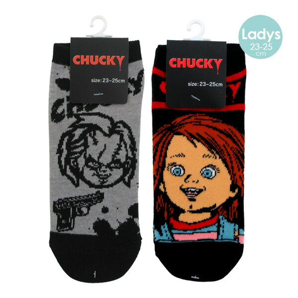 ◆選べる3P¥1,110対象商品◆LI-6023-24-18 キャラクター ソックス チャッキー シルエット にっこり レディース 約23〜25cm CHUCKY ホラー映画 Hollywood ハリウッド 【ネコポス便発送可】