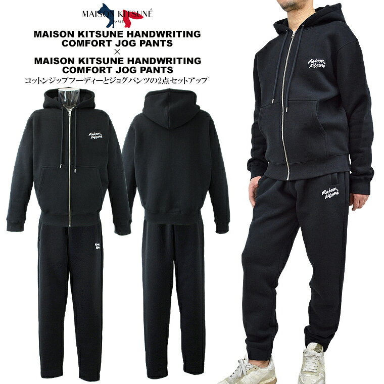 MAISON KITSUNE メゾン・キツネコットンジップフーディーとジョグパンツ2点セットアップHANDWRITING COMFORT ZIPPED HOODIE×HANDWRITING COMFORT JOG PANTS 男女兼用【clearance sale限定】【CLOSE OUT SALE限定】【税込3,980円以上で送料無料】【即納】