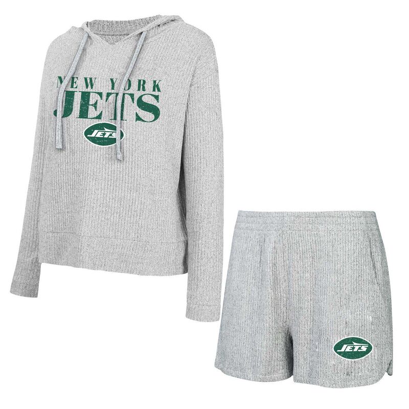 アンブランデッド レディース アンダーウェア ナイトウェア Tシャツ ショートパンツ パーカー Unbranded Women's Conceptsport Gray New York Jets Juniper Long Sleeve Hoodie T-Shirt & Shortset Jet Grey グレー