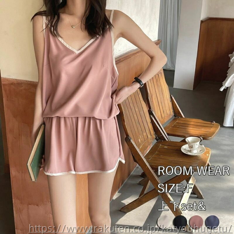 【大人気商品】ルームウェア レディース 上下セット リブレースキャミソール&ショートパンツセット パジャマ セットアップ ブラトップ キャミソール 部屋着 綿混 シンプル リブ 無地 可愛い パジャマ楽盛りキャミソール