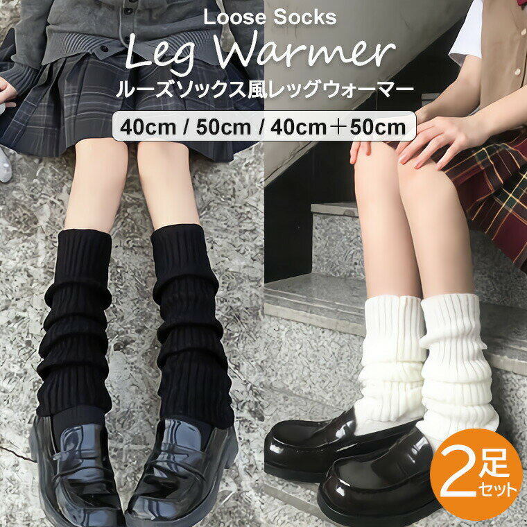 ルーズソックス レッグウォーマー レディース 2足セット 選べる2サイズ&カラー 40cm 50cm ホワイト ブラック リブレッグウォーマー 靴下 ソックス 足首ウォーマー 防寒