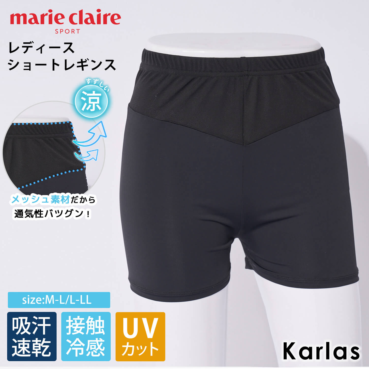 【在庫処分!】 マリクレール marie claire GOLF ゴルフウェア ショート丈レギンス レディース ブランド 接触冷感 メッシュ 切替 通気性 UVカット 3分丈 ボトムス アンダーウェア インナーウェア 黒 2025ss 春 夏 karlas