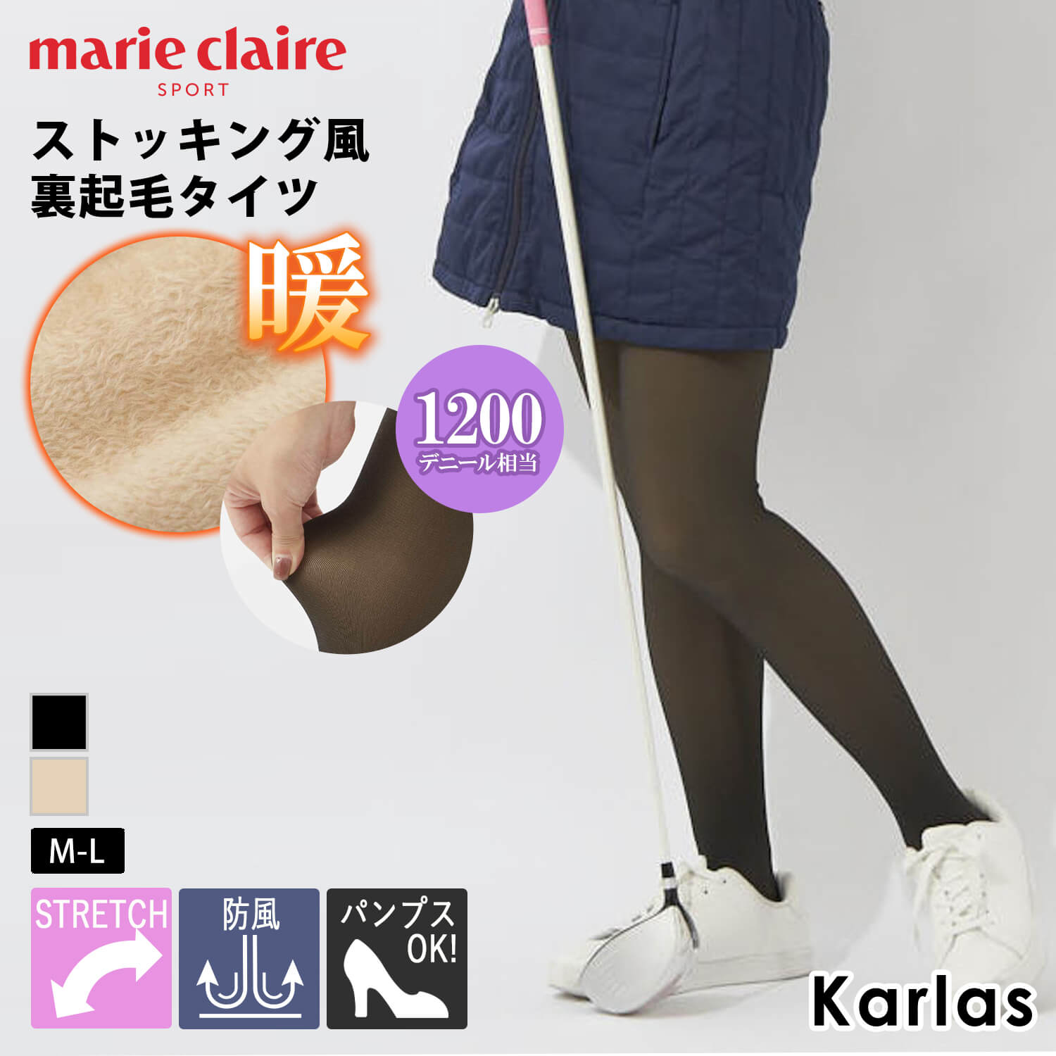 marie claire GOLF マリクレール ゴルフウェア タイツ 1200デニール 裏起毛 レディース 厚手 ストレッチ 防風 防寒 美脚 透け感 フェイクタイツ 裏起毛パンツ M-L 黒 2023fw karlas